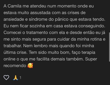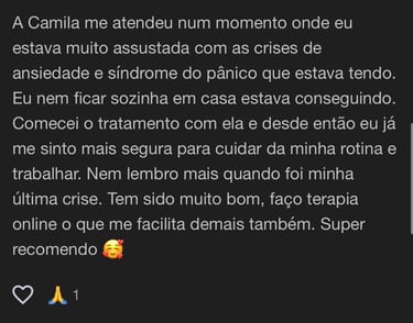 Olá, sou a Camilla Navarro, psicóloga formada há 10 anos com especialização em: